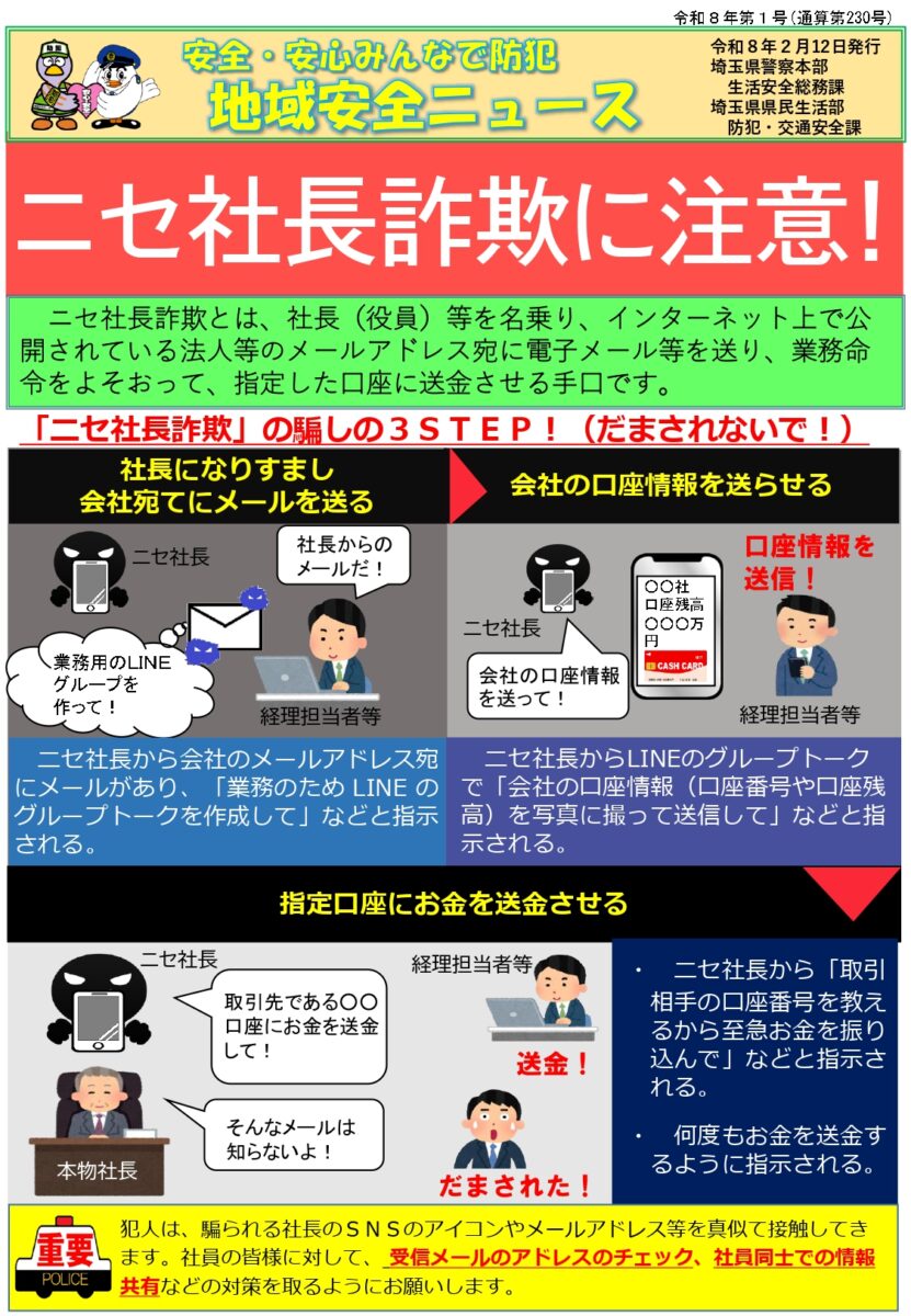• 地域安全ニュース(偽社長詐欺に注意!)