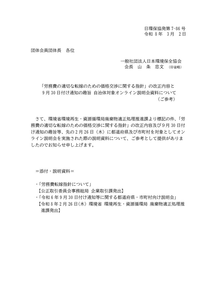 「労務費の適切な転嫁のための価格交渉に関する指針」の改正・9月30日付け通知自治体向け趣旨節女理解資料について(ご参考)