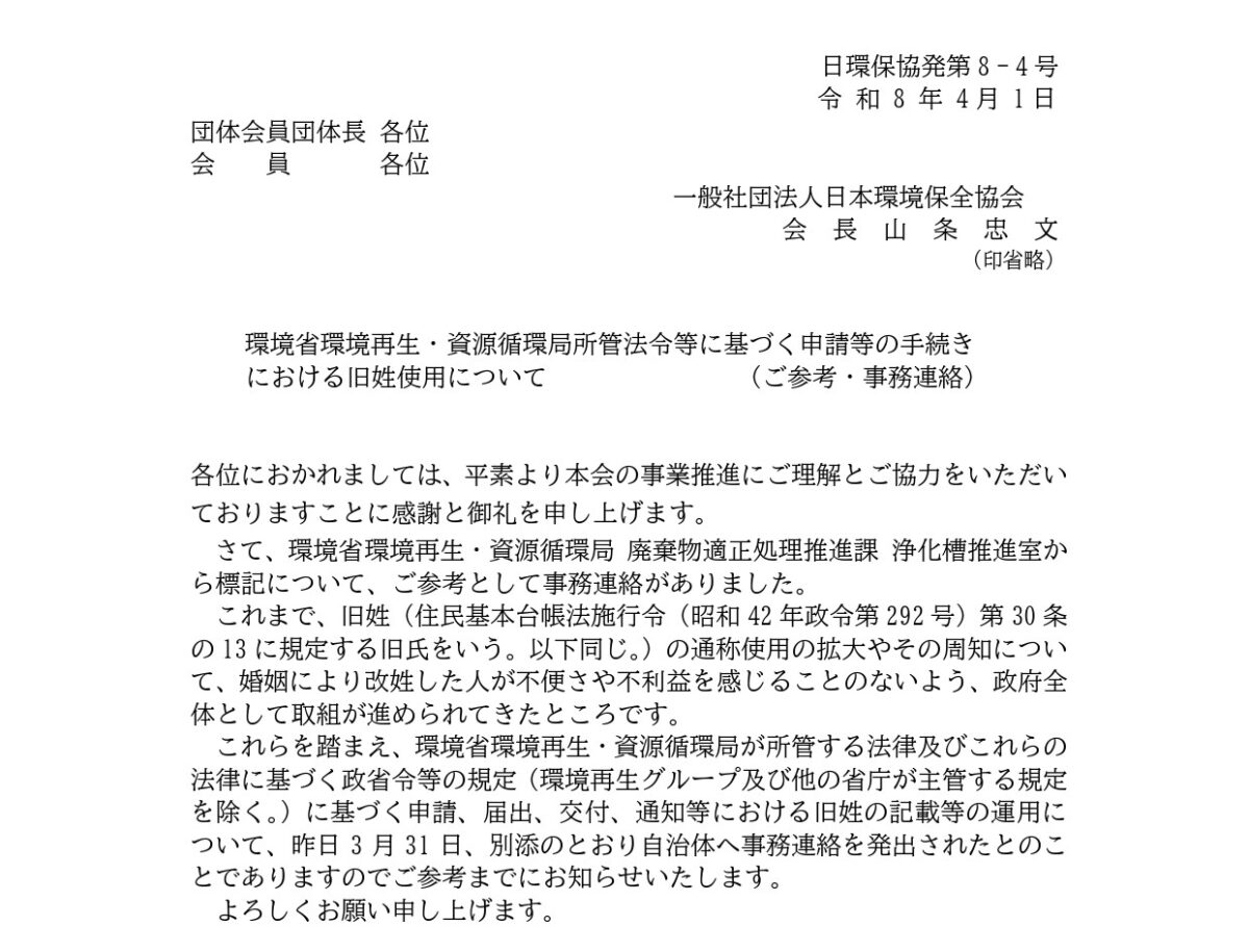 • 環境省環境再生・資源循環局所管法令等に基づく申請等の手続きにおける旧姓使用について